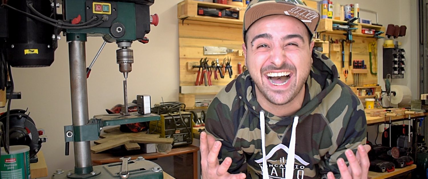 Questa volta è toccato al trapano a colonna beccarsi la mia ideina matta e anche per questo progetto non potevo non fare a meno del ormai famosissimo pannellaccio giallo e dei miei amatissimi pallet…